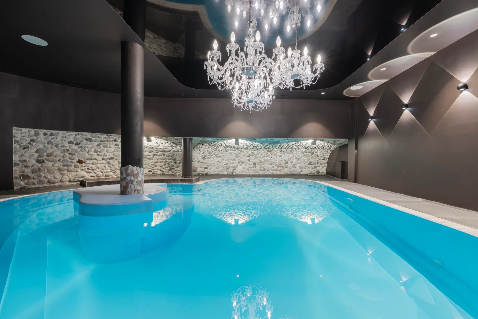 • Lichtkonzept mit Kronleuchter – weit entfernt vom klassischen Hallenbad