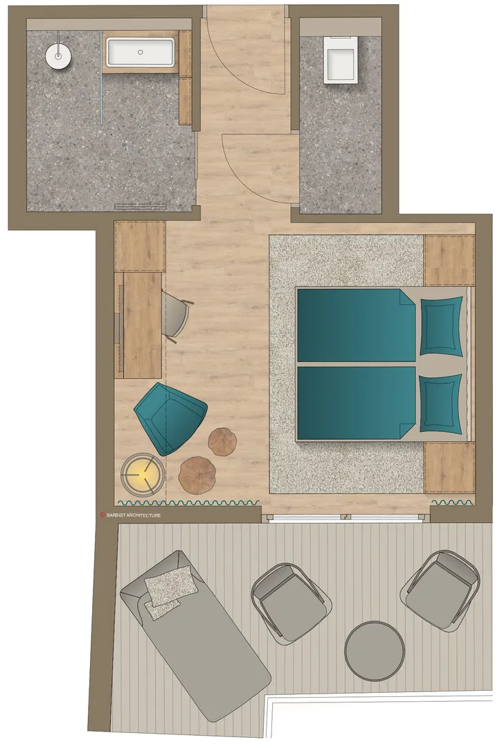 Reduktion auf das Wesentliche – und gerade deshalb so wohltuend: Im Doppelzimmer Alpine Klarheit trifft massives Eichenholz auf feine Strukturen, sanfte Farben spielen im natürlichen Licht. Das Ergebnis? Ein Raum zum Durchatmen. Zum Ankommen. Zum Bleiben. Der alpine Charakter zieht sich bis ins Detail – harmonisch, ehrlich, warm. Das Bad zeigt sich im klassischen Stil und rundet das Gesamtbild ab: vertraut, stilvoll, zeitlos. Ein Rückzugsort für alle, die klare Linien lieben und das Besondere im Einfachen finden.